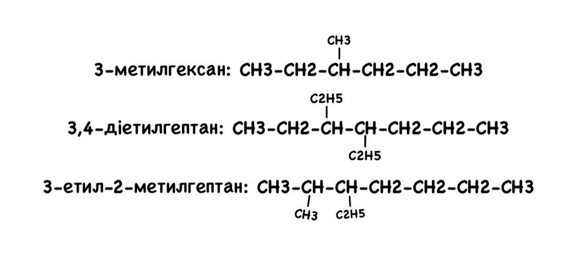 Складіть структурні формули молекул алканів, що мають такі назви: