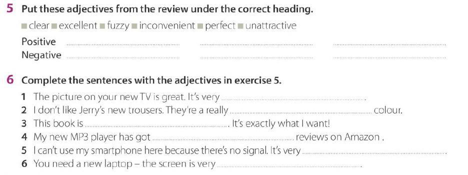 Positive (+): clear (чёткий), excellent (отличный), perfect (идеальный)