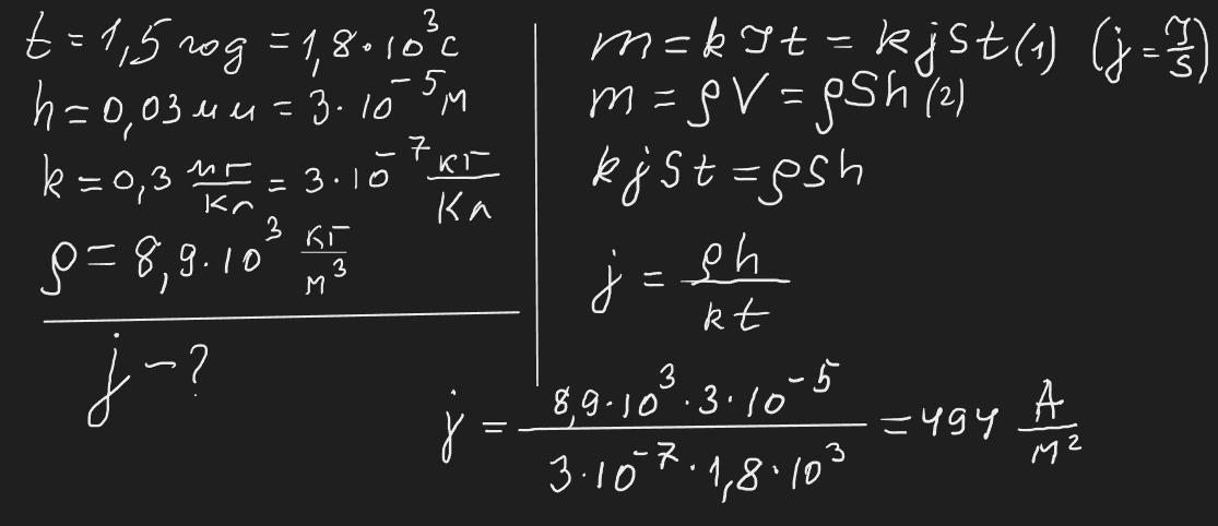 при нікелюванні виробу протягом 1,5 год на ньому утворився шар нікелю завтовшки 0,03мм. визначте середнє значення густини струму