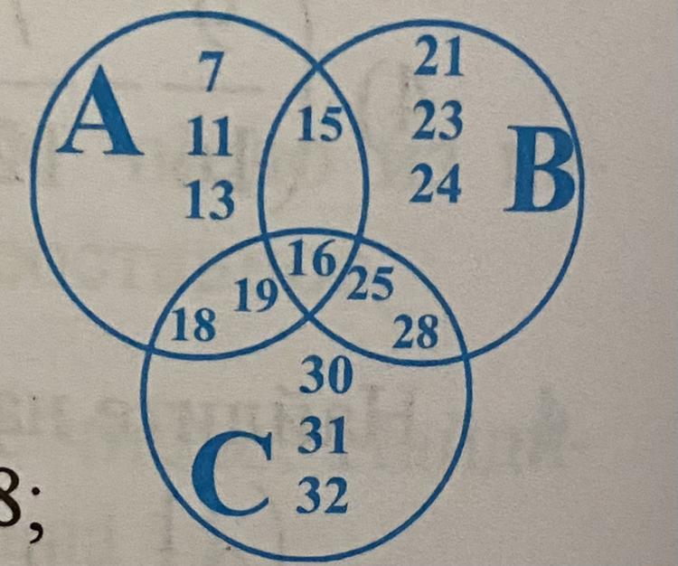 (A∩B)∪C={15;16;18;19;25;28;30;31;32}