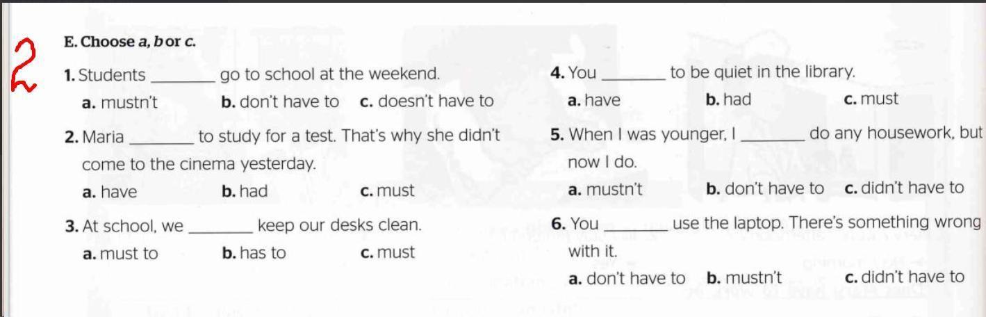 2. Maria had to study for a test. That's why she didn't come to the cinema yesterday.