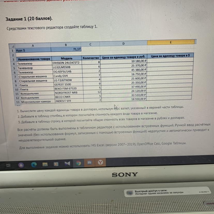 В тупик ставит прямо первая строчка: "Средствами ТЕКСТОВОГО редактора создайте таблицу". А в дальнейшем везде упоминаются функции не текстового, а табличного редактора. Так чем же ее создавать?