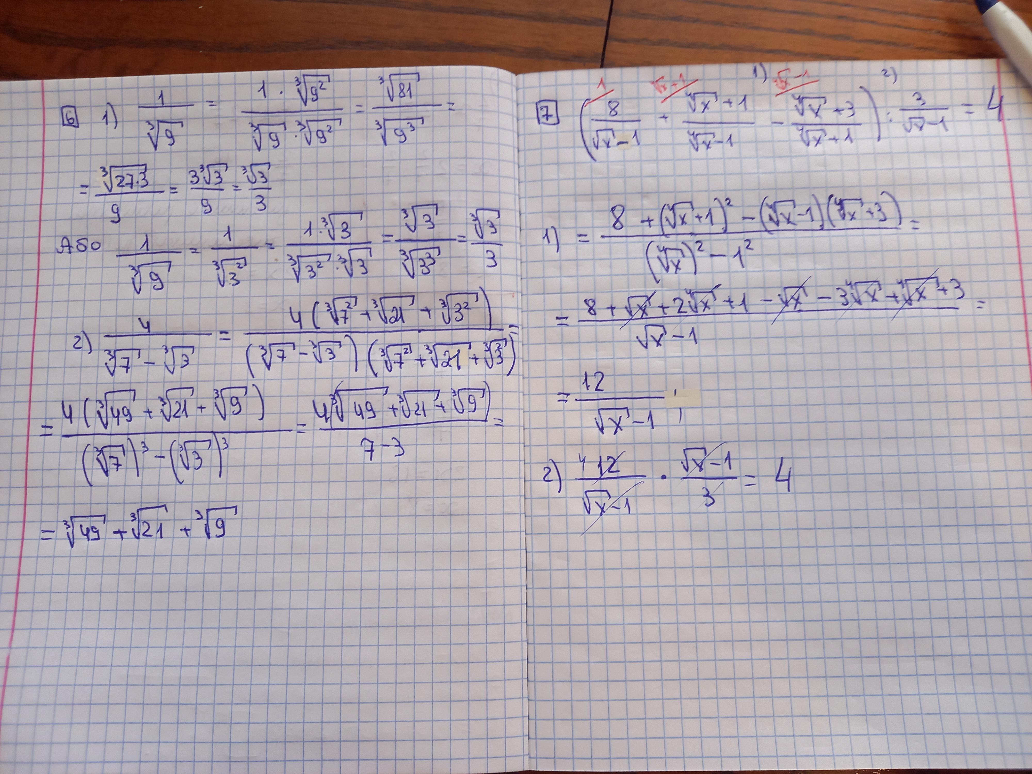 Применяем свойства корней и формулы сокращённого умножения: разность кубов , разность квадратов .