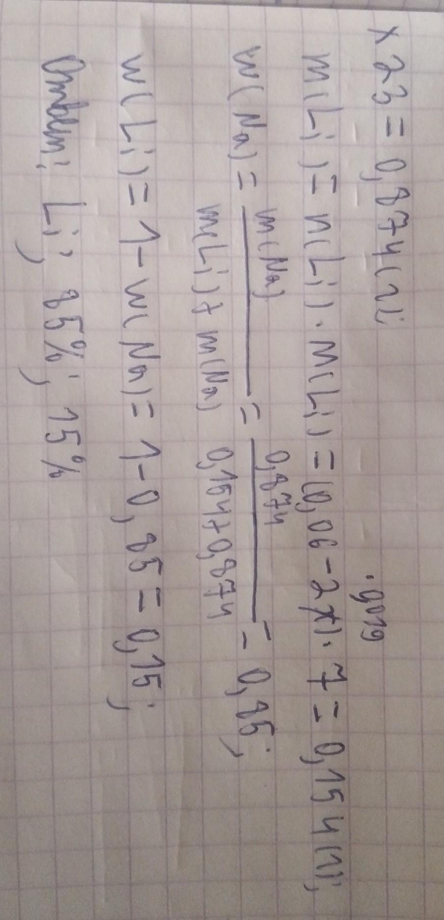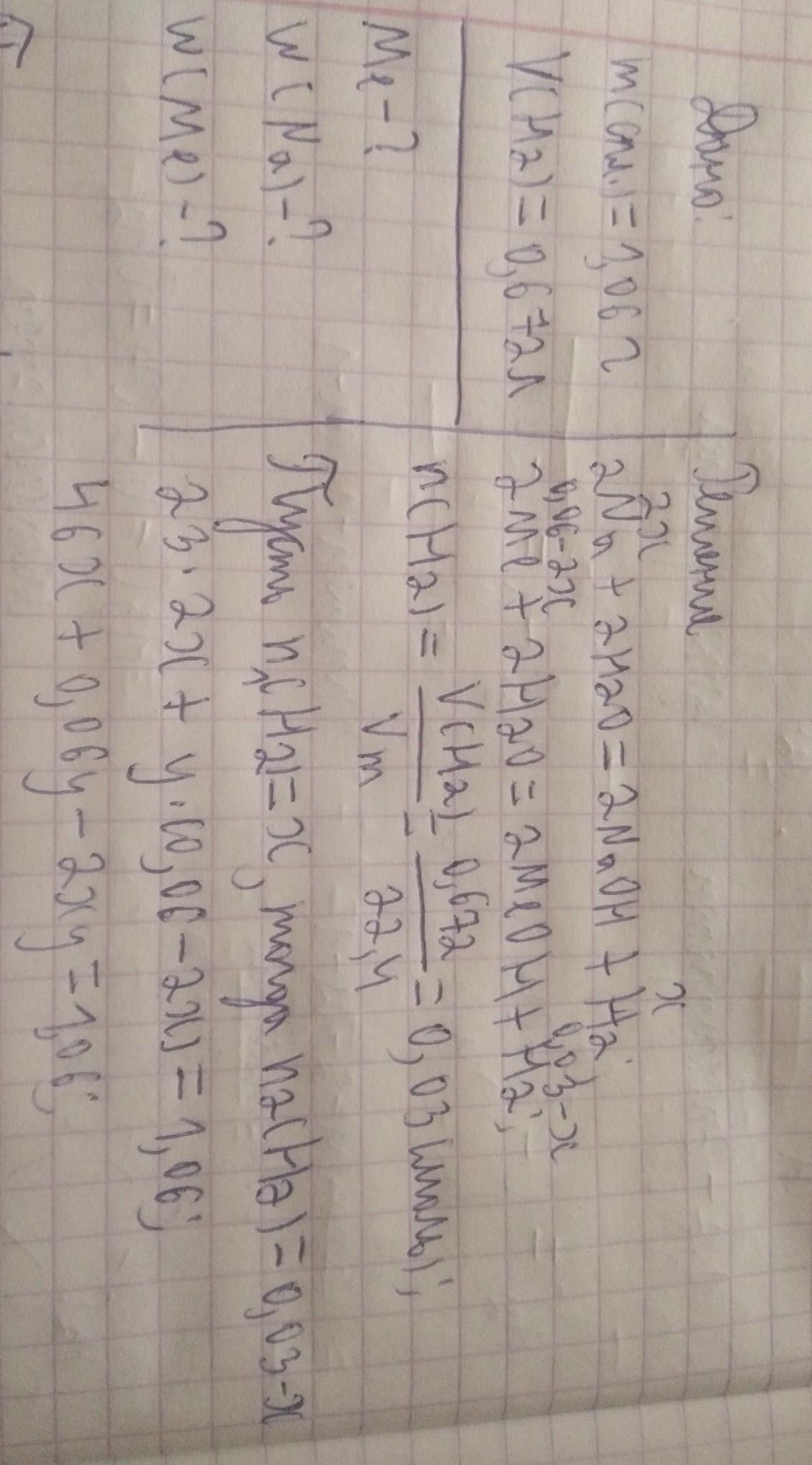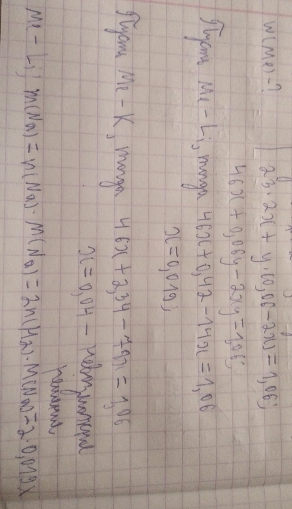 . За взаємодії сплаву натрію з іншим лужним металом масою 1,06 г з надлишком води виділився газ об’ємом 0,672 л (н.у.). Визначте невідомий метал, що входить до складу сплаву та масові частки кожного металу в ньому.