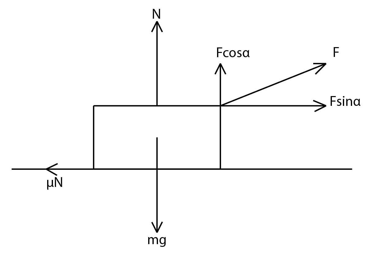 Сила трения = μN=μ(mg - Fcosα) = 148 N