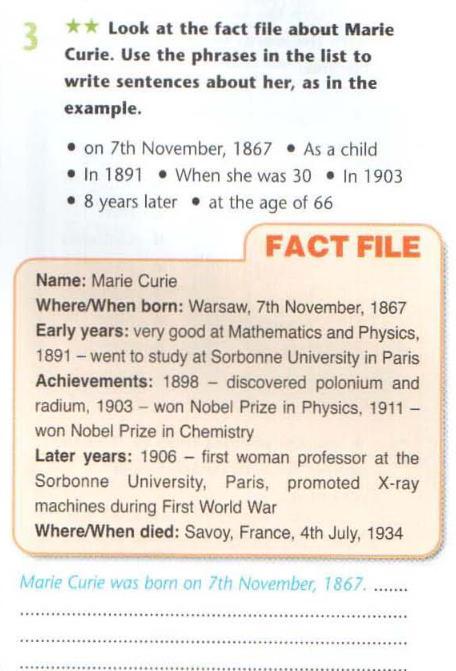 1. Maria Curie was born on 7th November, 1867.