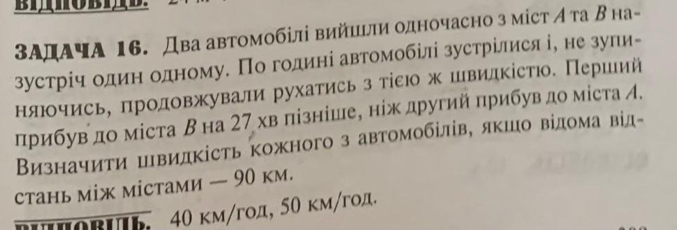 90 - х = 90 - 40 = 50 км/год швидкість автомобіля який вийшов з міста В