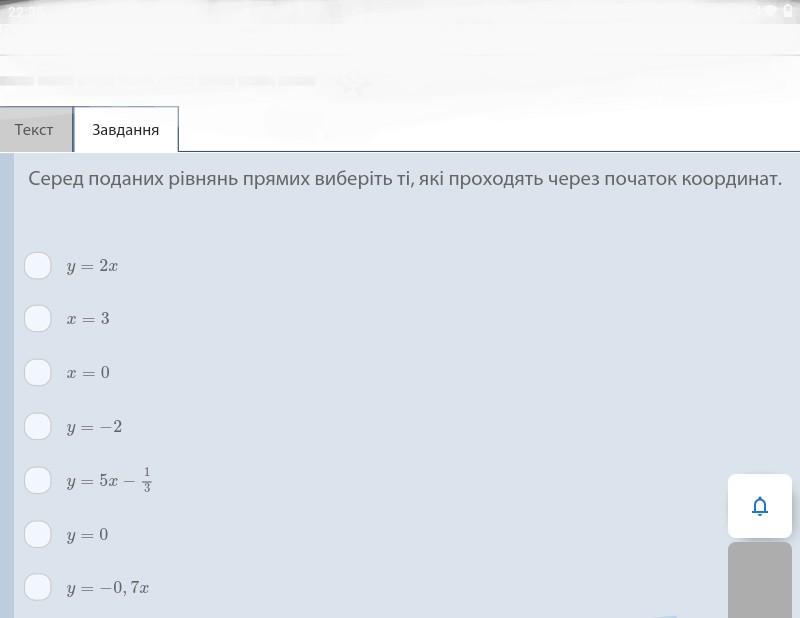 Серед поданих рівнянь прямих виберіть ті, які проходять через початок координат.