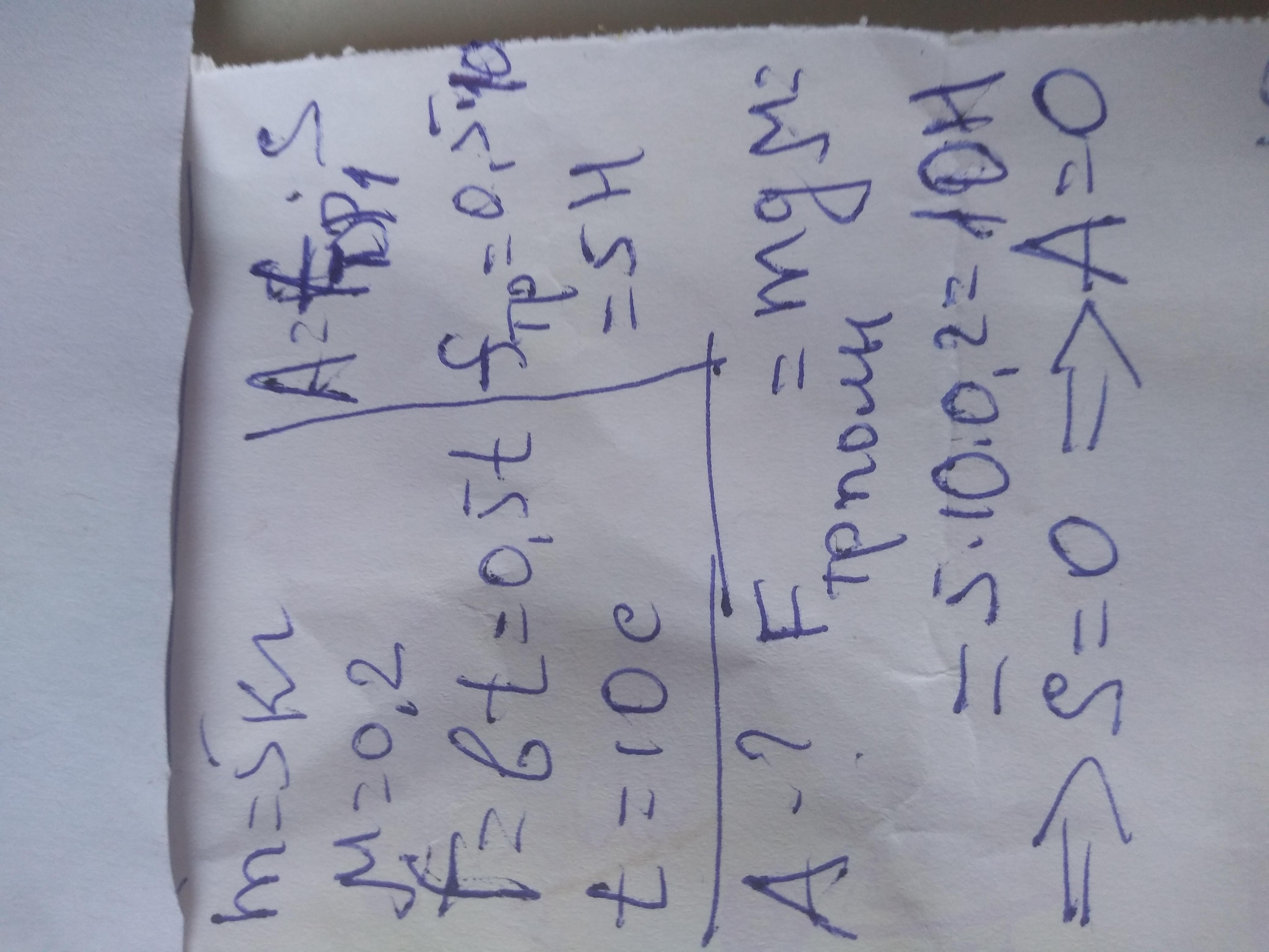 Тело массой m — 5 кг лежит на шероховатом горизонтальном столе. Коэффициент трения между телом и столом 0.2. На тело начинает действовать горизонтальная сила, модуль которой изменяется со временем по закону f=b*t где b — 0,5H/с. Определите работу силы трения, совершенную за