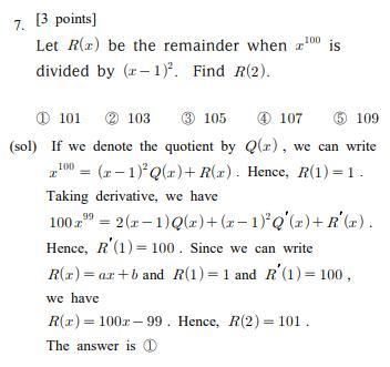 x^100 = Q(x)*(x-1)^2+ R(x) (R(x) это функция остатка, и опять же чтобы было легче понимать мы обозначили его за букву R(remainder))
