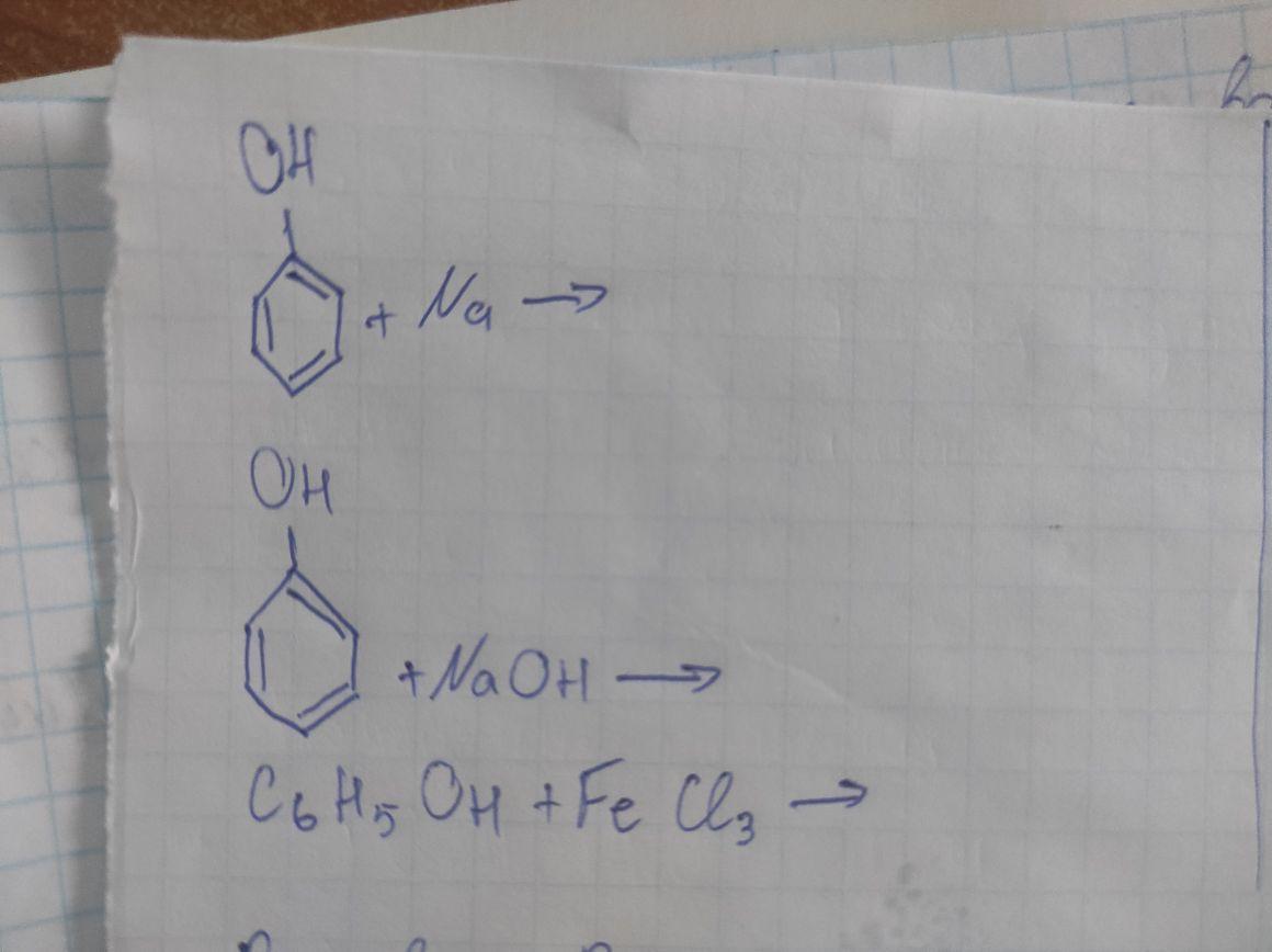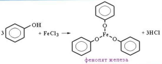 3C₆H₅-OH + FeCl₃ → (C₆H₅-O-)₃Fe + 3HCl (Структурное уравнение представлено внизу на 2-ой фотографий)