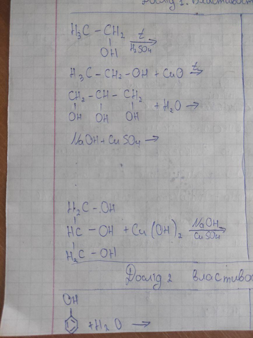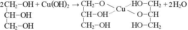 HO-CH₂-CH(-OH)-CH₂-OH + Cu(OH)₂ (NaOH/CuSO₄) → (Уравнение реакции представлено внизу на 1-ой фотографий) ↓