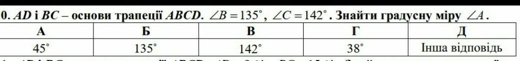 за властивістю кутів трапеції, прилеглих до бічної сторони, <A+<B=180°. Тоді <А=180°-135°=45°