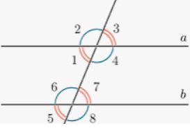 Если две параллельные прямые пересечены секущей, накрест лежащие углы равны. Если две параллельные прямые пересечены секущей, то соответственные углы равны. Если две параллельные прямые пересечены секущей, то сумма односторонних углов равна 180°.