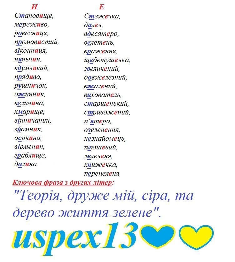 У ліву колонку випишіть слова зі вставленою у суфіксах буквою и, у праву—зі вставленою буквою е.