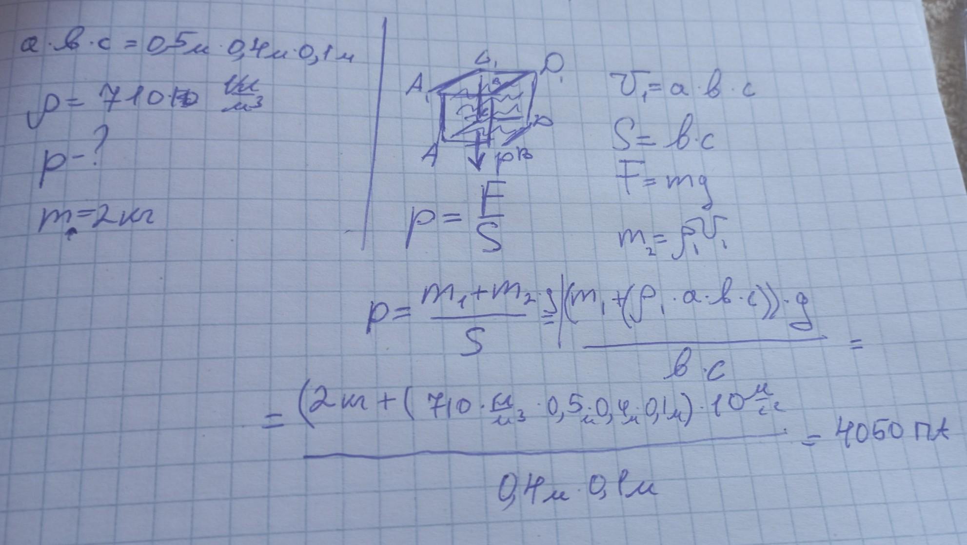 а) 9 кг. б) 90 кг. B) 5. Прямоугольную канистру заполнили доверху бензином. Размеры Рассчи- канистры 0,5 ×0,4×0,1 м, плотность бензина равна 710-3. КГ M тайте, какое давление оказывает канистра на пол, если размеры дна 0,4×0,1 м, а масса пустой канистры равна 2 кг. Есть ли в задаче лишние данные? Какие? 52 Имя, фамилия Отметка