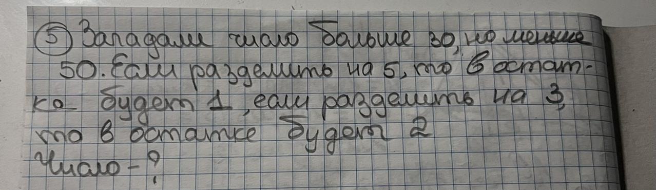 Если х разделить на 5, то в остатке получится 1. Выпишем множество A таких чисел: A={36; 41; 46}