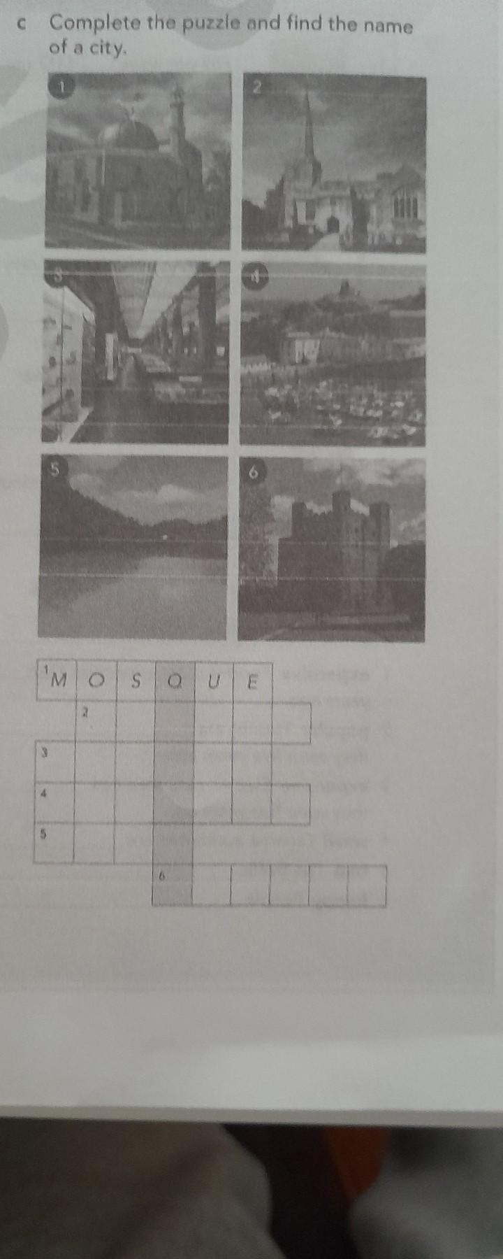Complete the puzzle and find the name of a city. - Нужно написать, что изображено на картинках, и в выделенных клетках по вертикали получится название города.