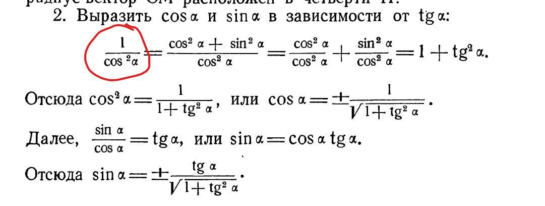 Подскажите откуда всялось выражение при выражении cos и sin в зависимости от tg?