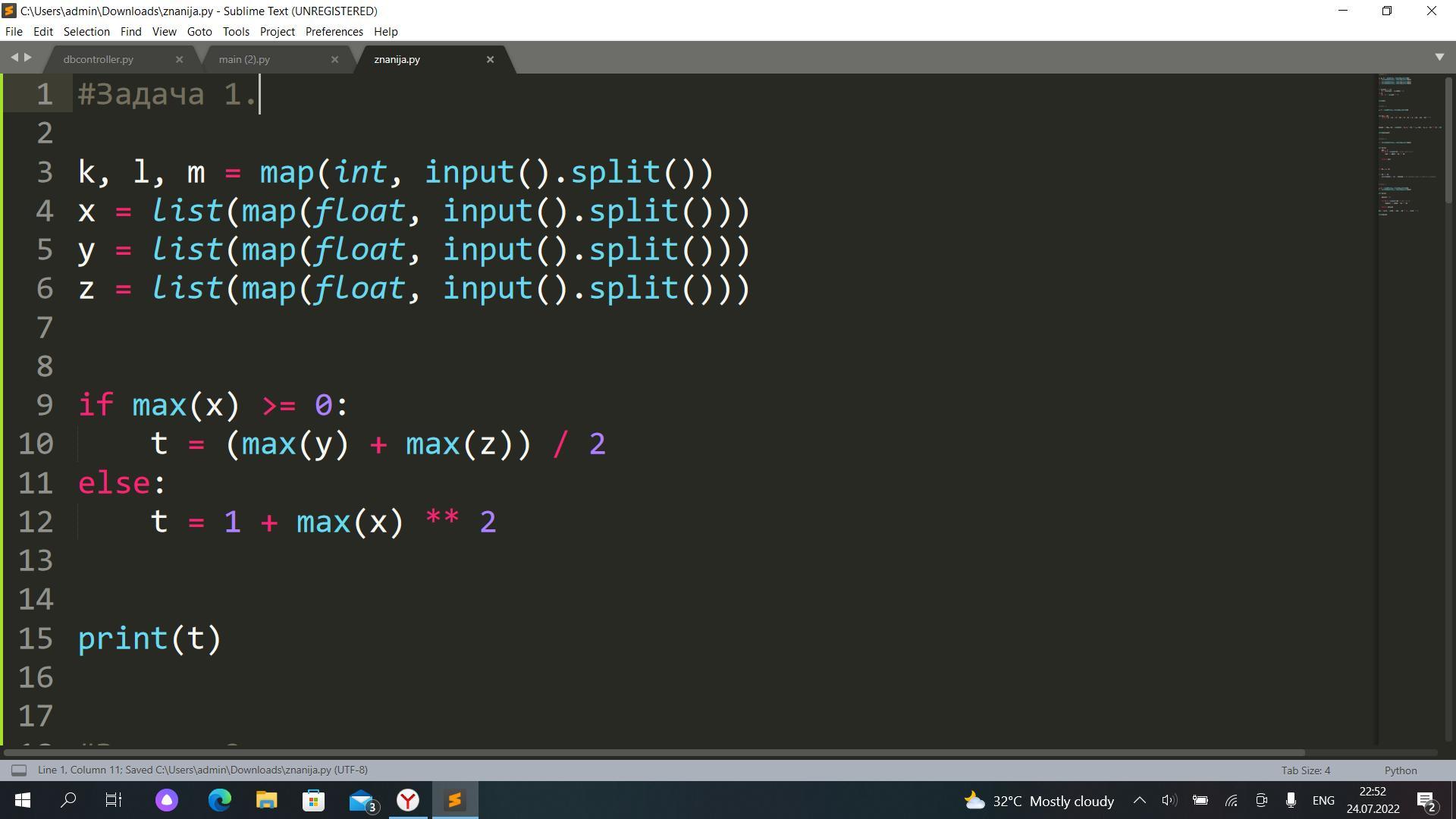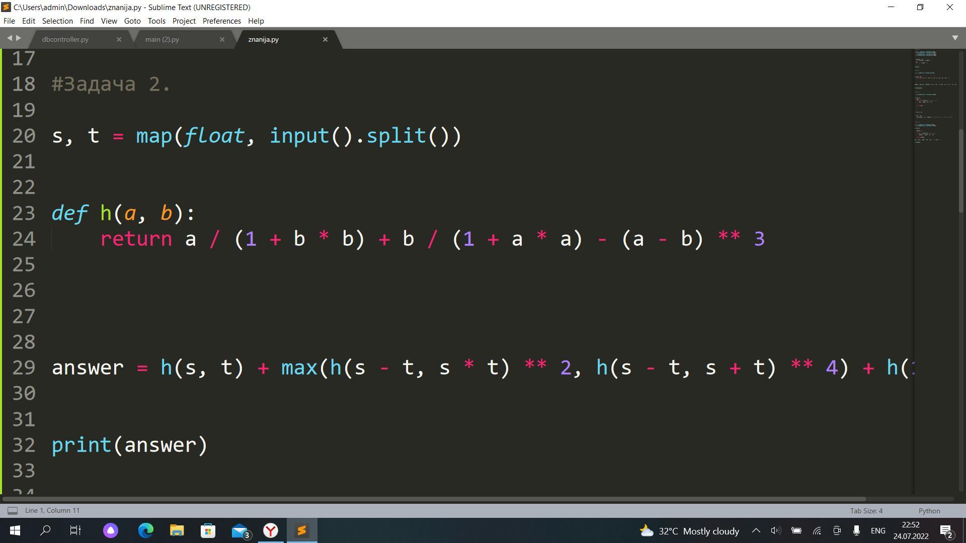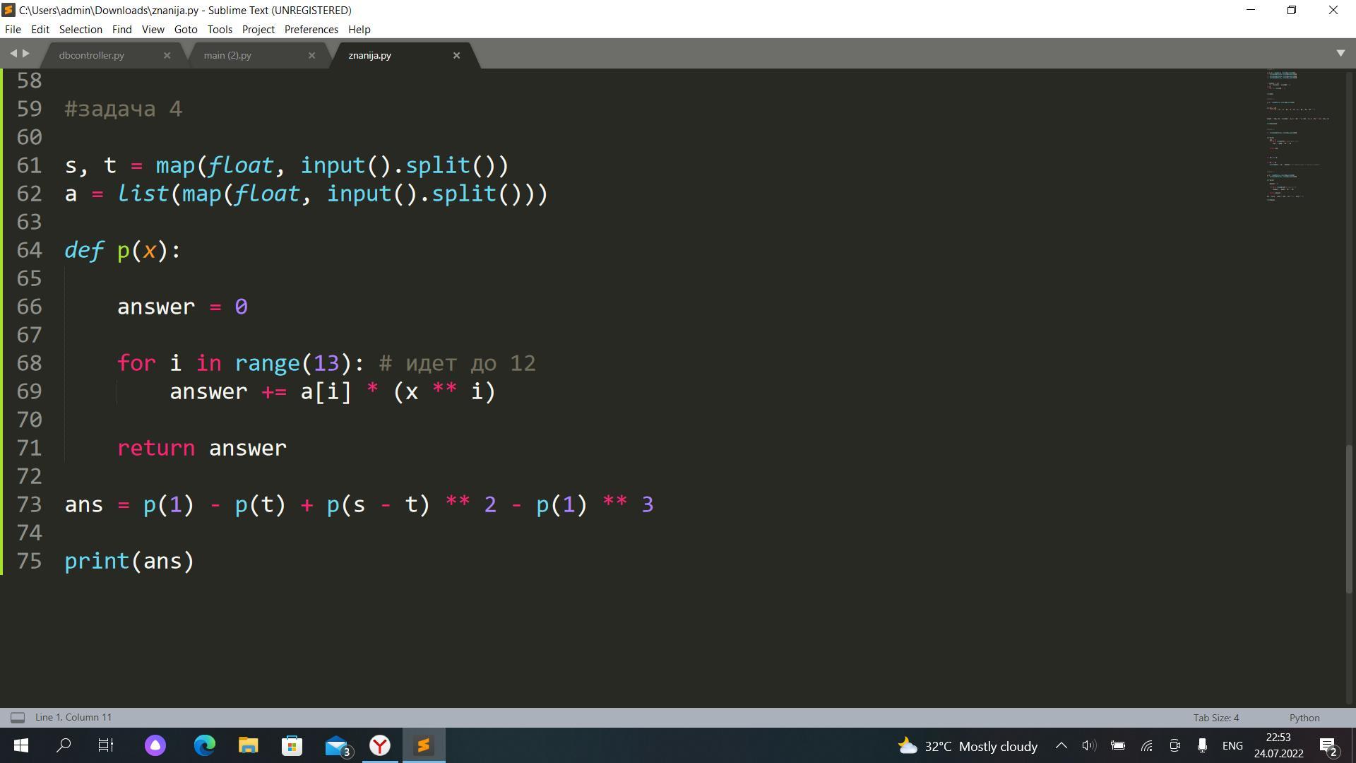ans = p(1) - p(t) + p(s - t) ** 2 - p(1) ** 3
