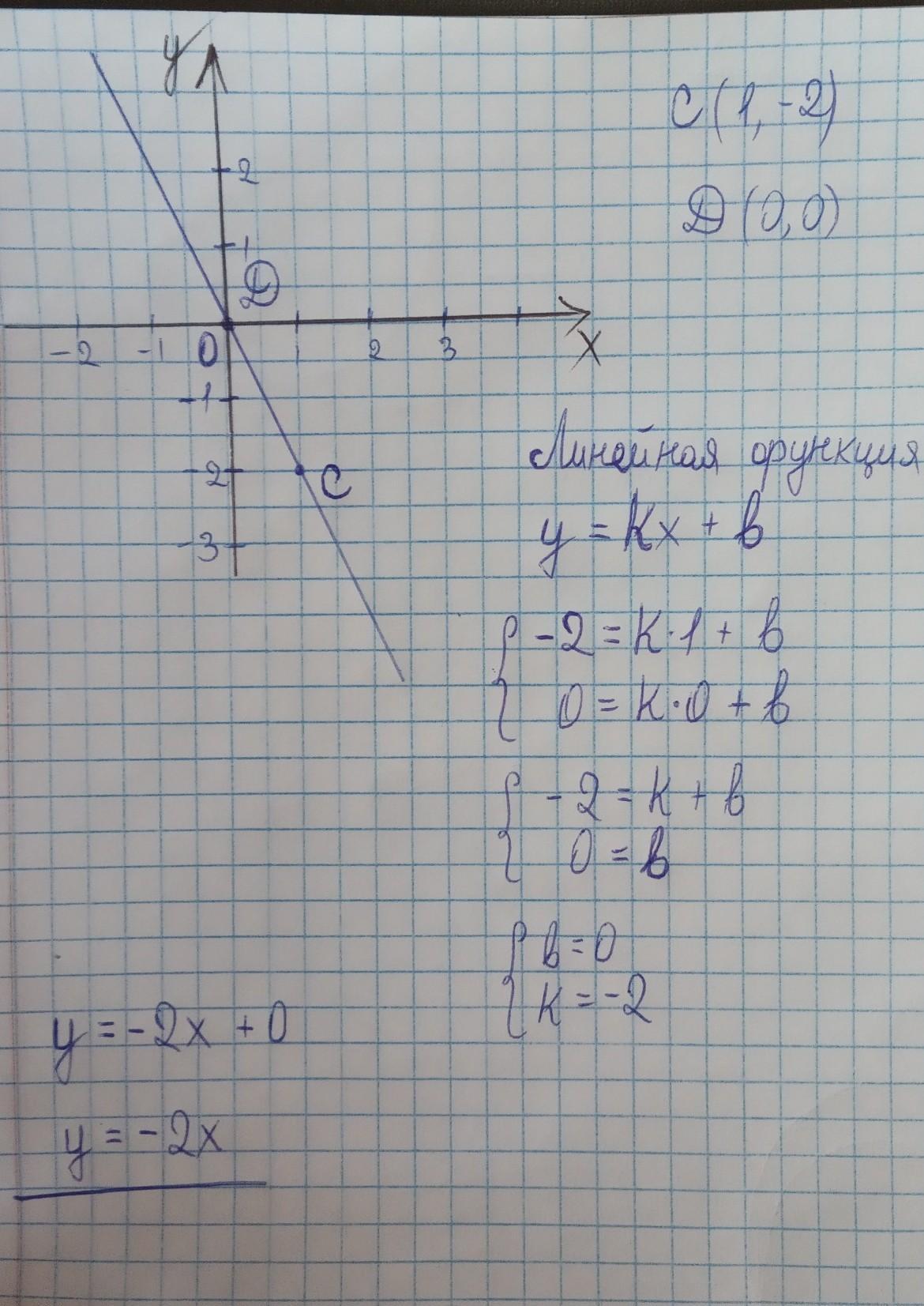 Подставим координаты точки С(1;-2) в уравнение у=kx , получим