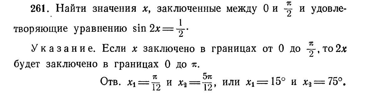 Квадратная скобка означает союз "или" . Синус равен 1\2 , значит записываем два множества решений : или то , что записано в первой строчке , или то , что во второй . Откройте учебник и найдите тему "решение простейших тригонометрических уравнений" .