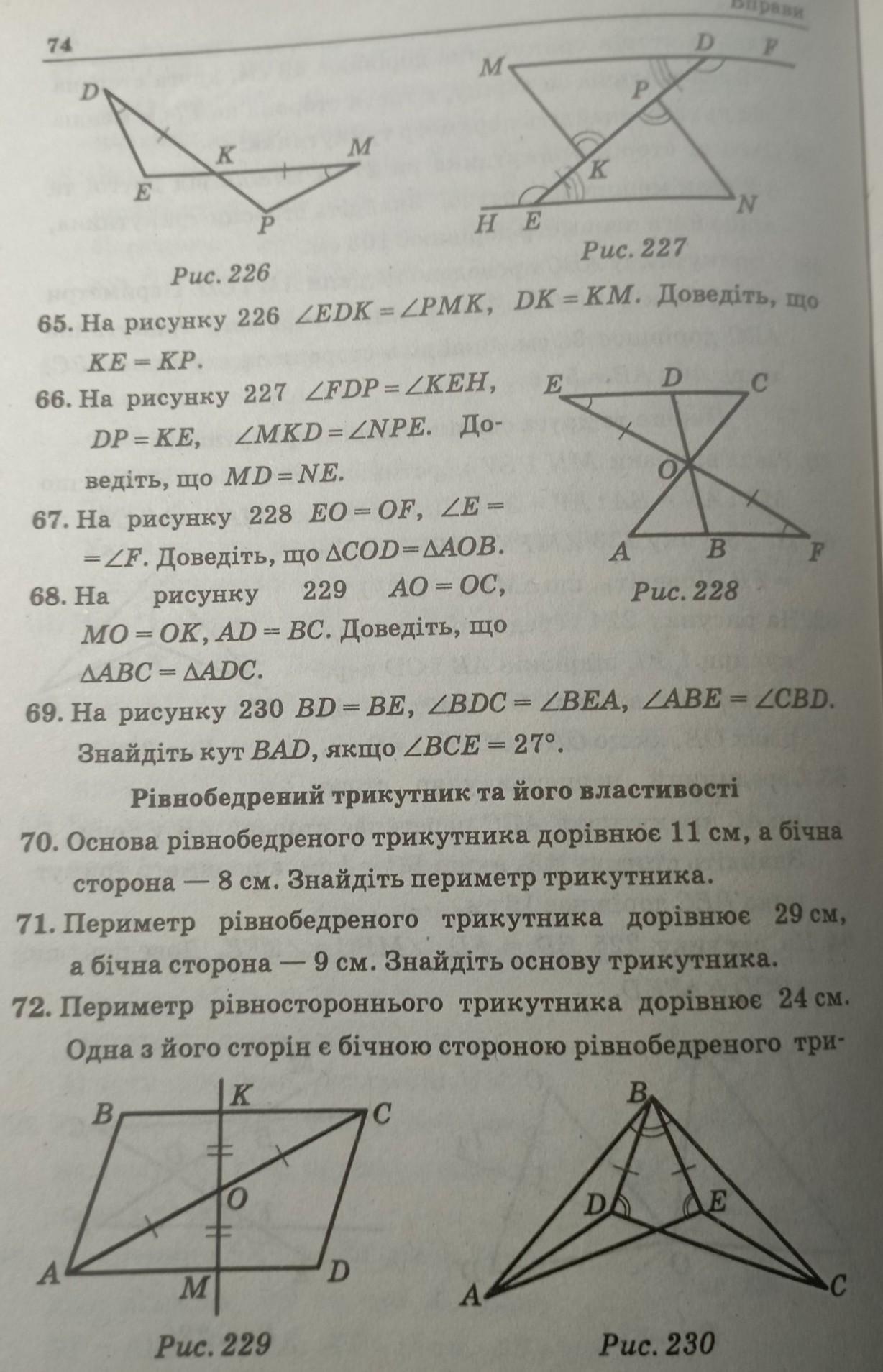 68) ∆ОС К=∆ОАМ по двум сторонам и углу между ними :ОК= ОМ, ОС=ОА по условию, <КОС=<АОМ как вертикальные. Значит <ОСК=<ОАМ . Тогда ∆АВС=∆СДА по двум сторонам и углу между ними :ВС= АД по условию , АС общая, <ОСК=<ОАМ по доказанному . Можешь ещё раз поменять вопрос, быстрее помогут.
