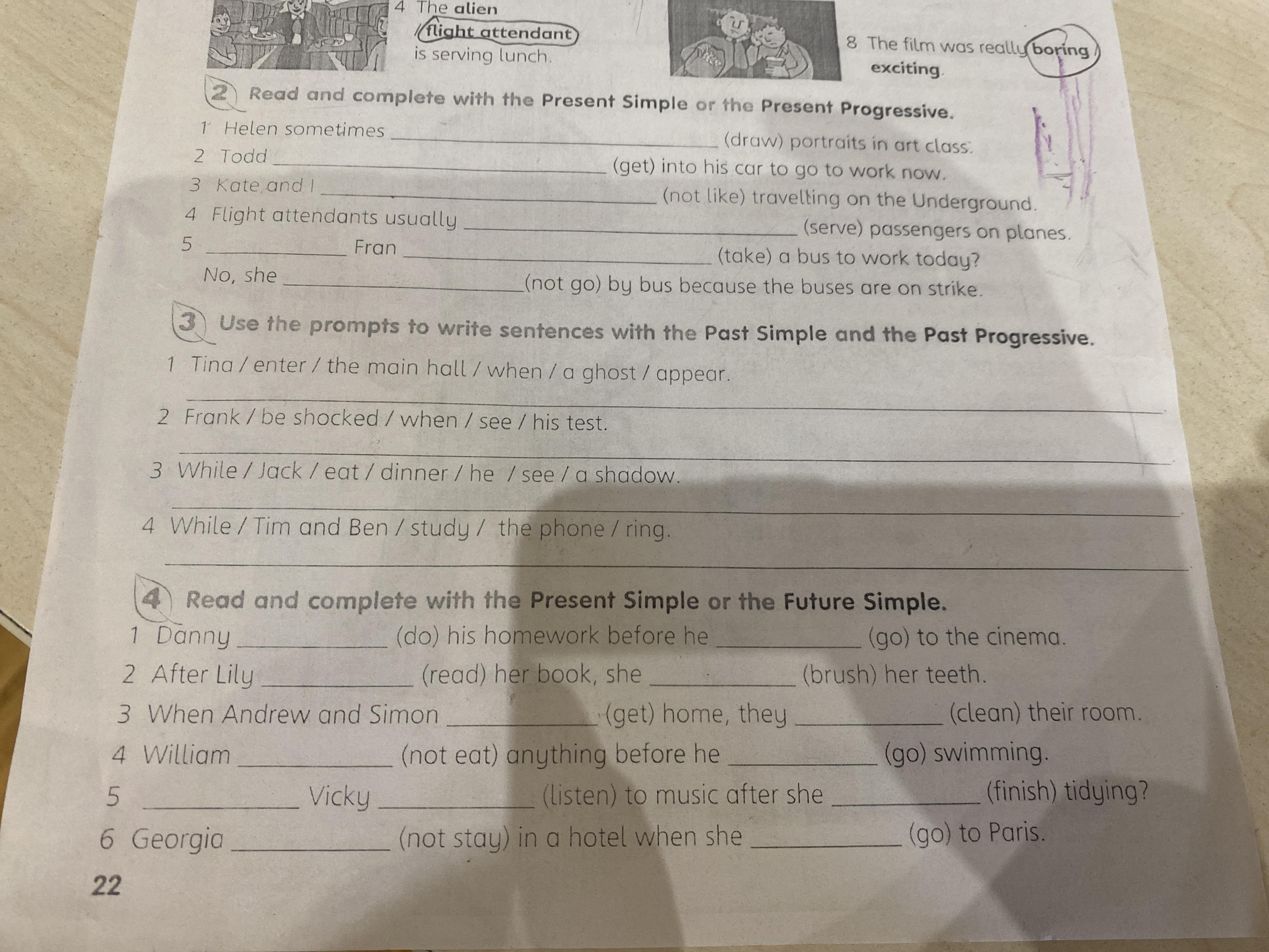 5. Is Fran taking the bus to work today( No, she isn't going by bus because .. .