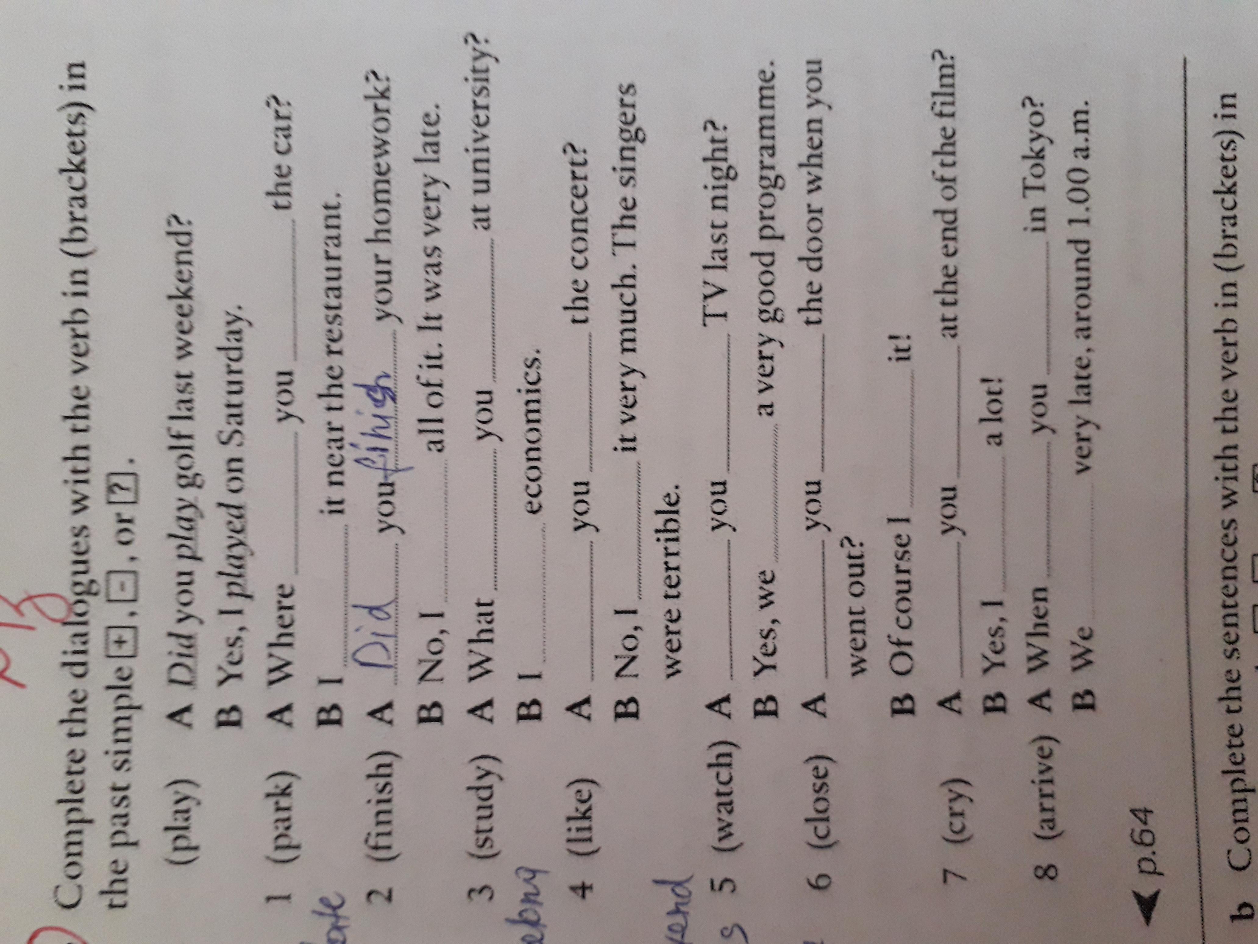 • Отрицания (—) в Past Simple строятся с помощью конструкции didn't (did not) + V (инфинитив без частицы to).