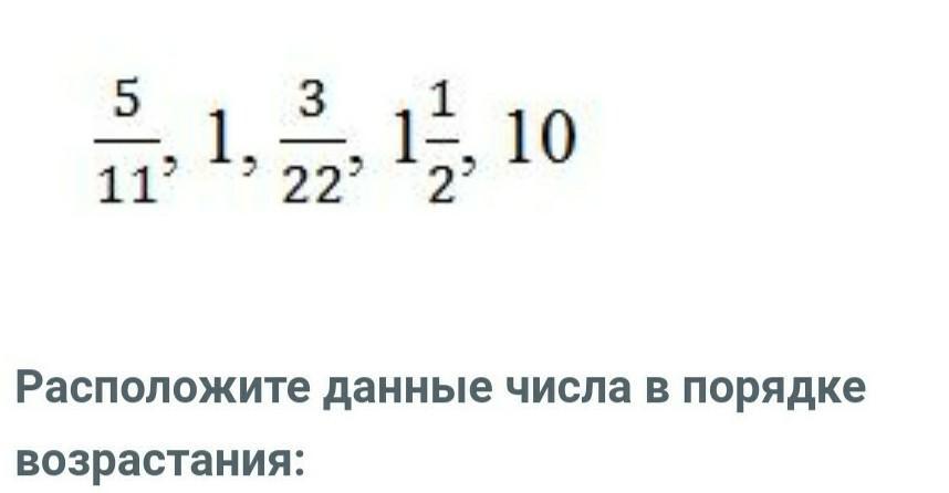 В порядке возрастания: 3/22; 5/11; 1; 1 1/2; 10.