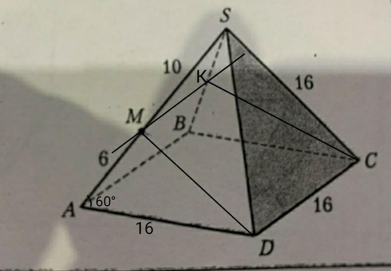 ∆АSD- равносторонний треугольник. В равностороннем треугольнике углы по 60°