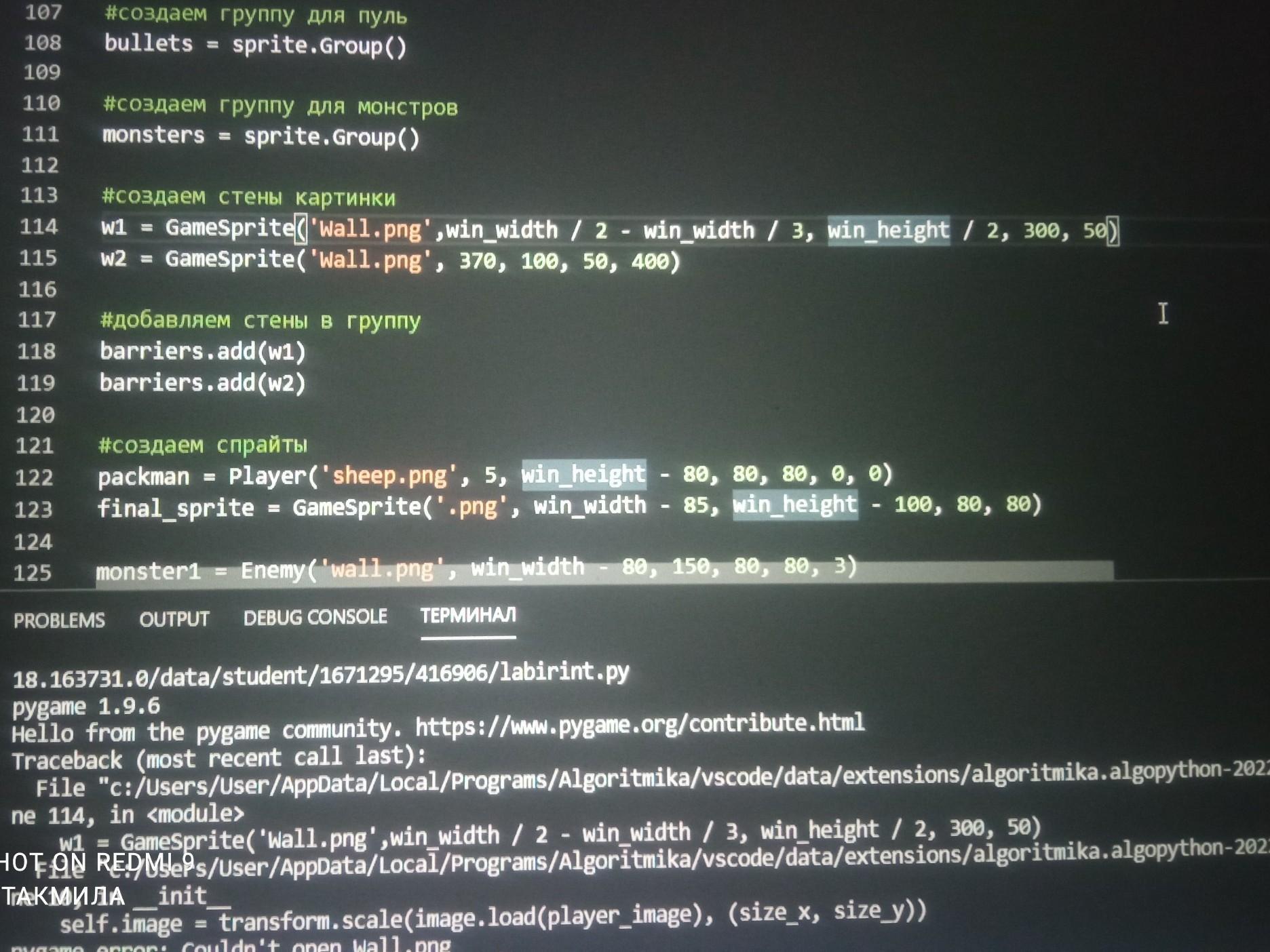 Відповідь: На скриншоте не понятно, скорее всего файл "Wall.png" должен быть написан маленькими буквами: "wall.png", либо файла не существует