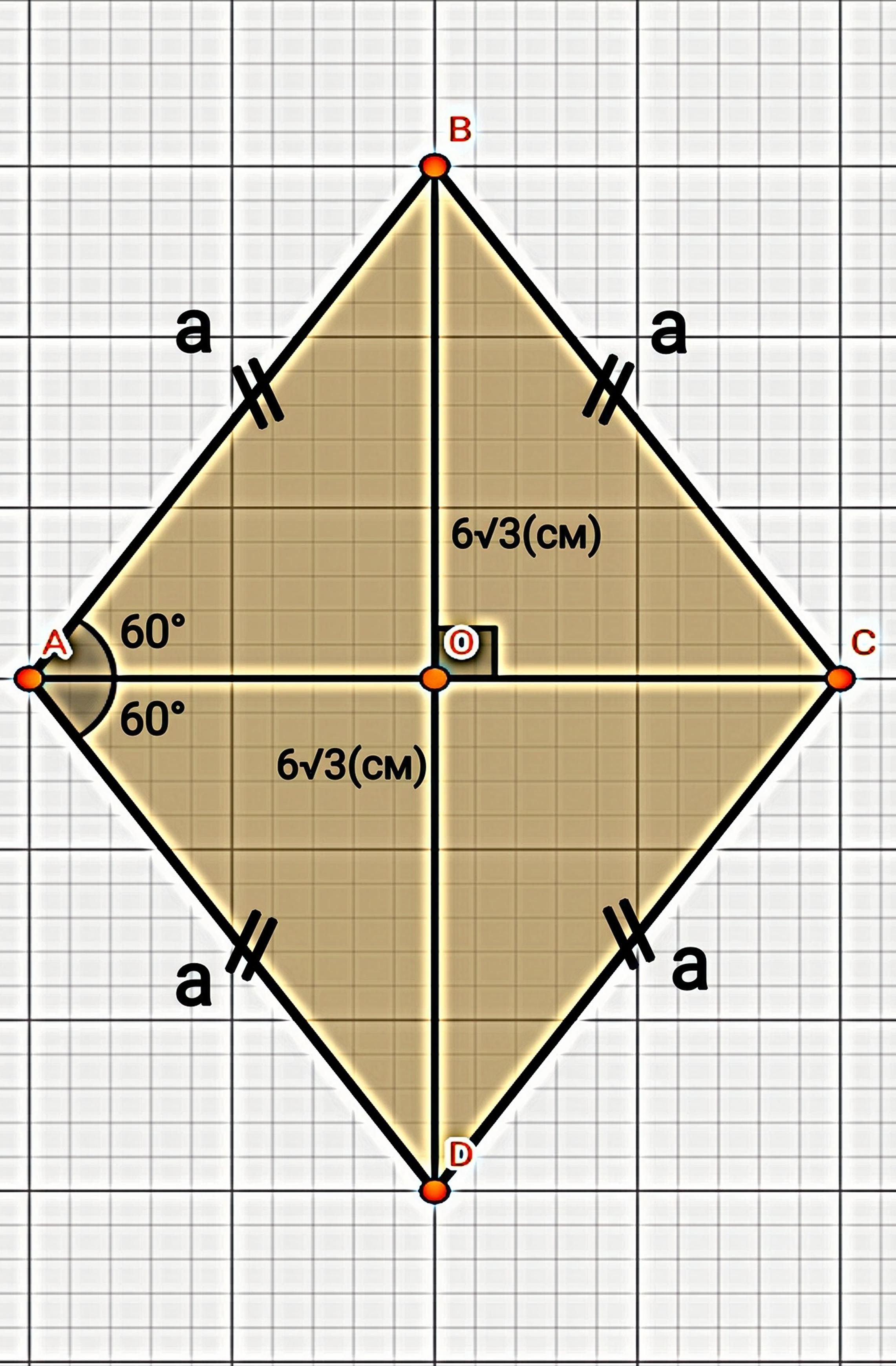 - Диагонали ромба перпендикулярны и точкой пересечения делятся попалам. ВО=DO=6√3см