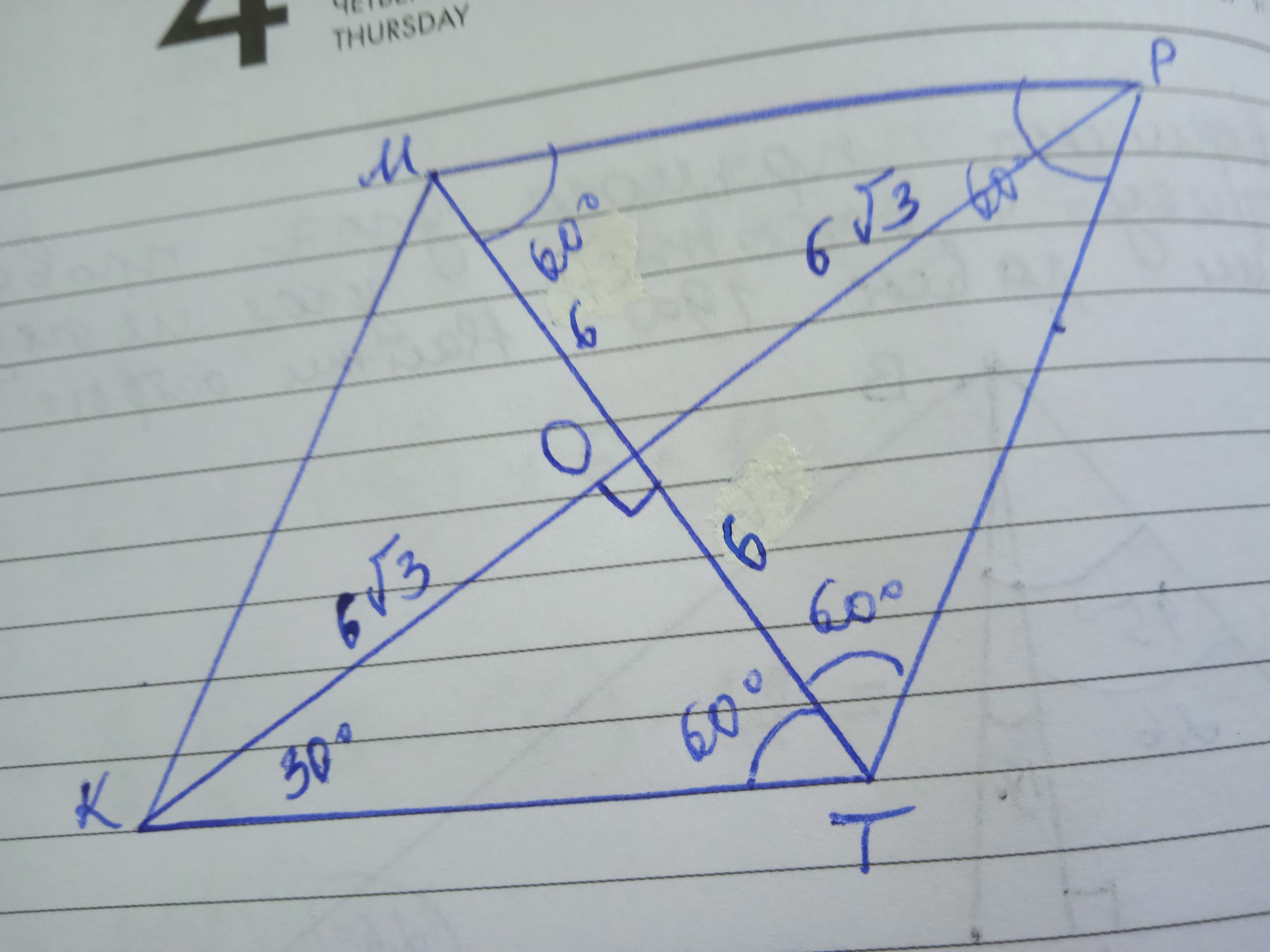 Дано: КМРТ - ромб, ∠КТР=120°, КР=12√3 см. МТ - ? КТ - ?