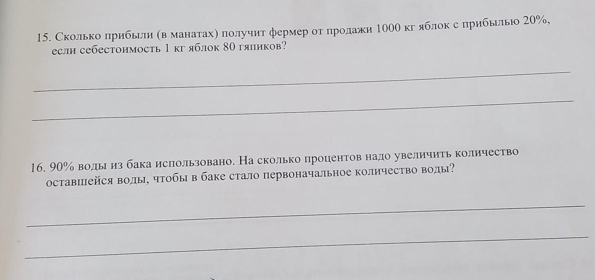 15. Прибыль на 1 кг яблок составит 20% от 80 гяпиков, т. е. гяпиков, а на 1000 кг — в 1000 раз больше: