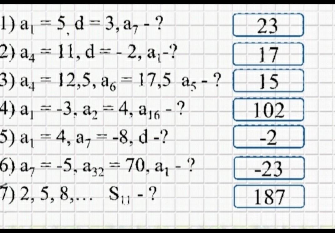 6) Дано: а₇ = -5, а₃₂ = 70