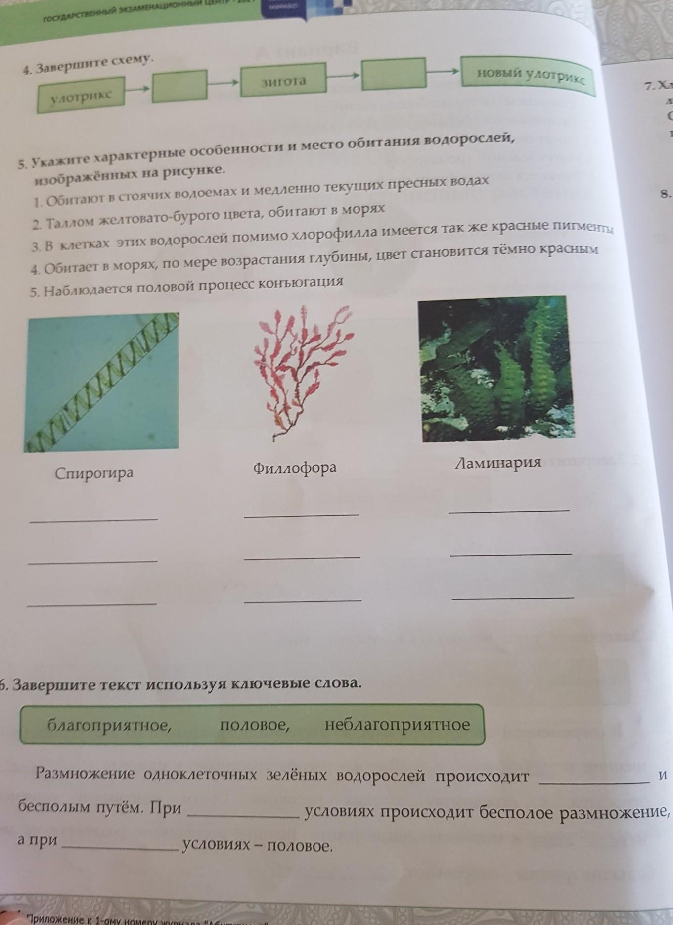 улотрикс → гаметы → зигота → споры → новый улотрикс