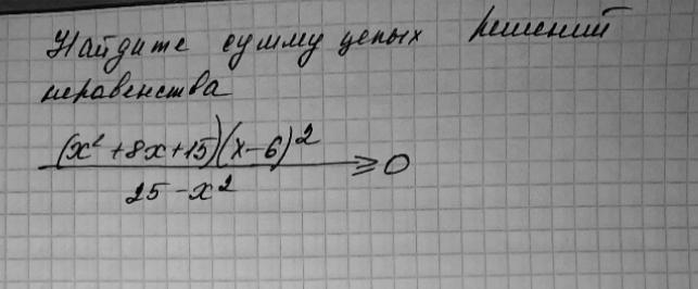 Таким образом, целыми решениями данного неравенства являются числа –3, –2, –1, 0, 1, 2, 3, 4 и 6. Их сумма равна 10.