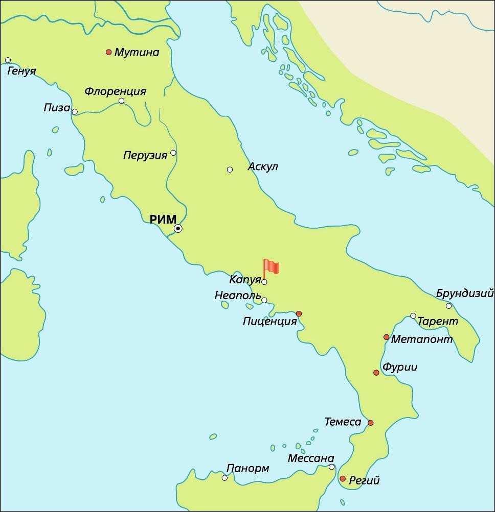 В) Почему город Капуя обозначен красным флажком? Напишите, какое событие там произошло.
