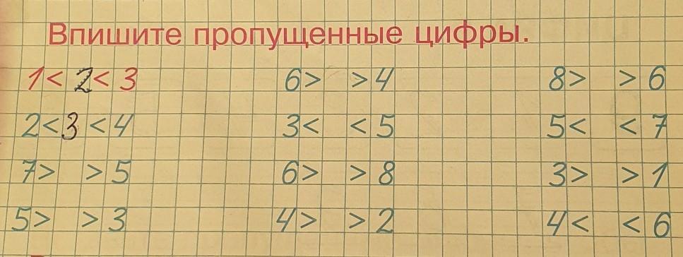 Впишите пропущенные 1< 2 3 6> >4 2 > 8 4> >2 7> >5 5> >3 цифры. 8>>6 < 7 5< 3> >1 4< < 6