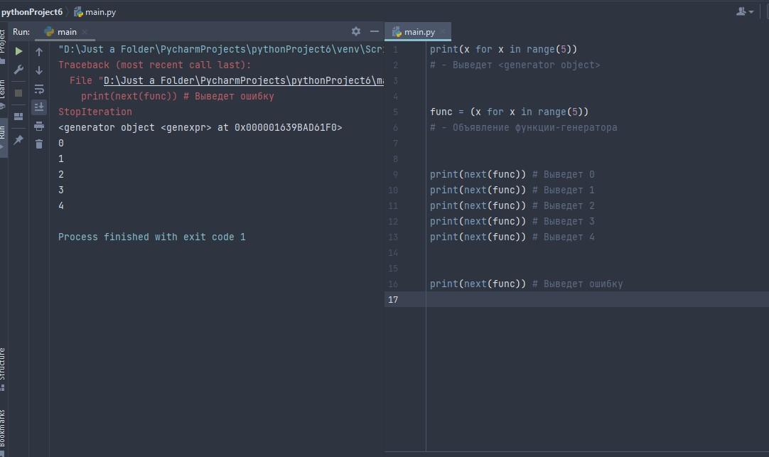 Объяснение: Ошибка в 4й строке. - Пытаешься вывести "функцию-генератор". Подробнее можно посмотреть в интернете по одноимённому названию.