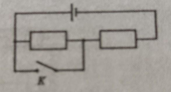 два однакові резистори увімкнені в електричне коло, як показано на рисунку. як зміниться загальна сила струму в колі, якщо замкнути ключ К?