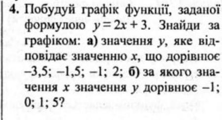 4 . Функція у = 2х + 3 - лінійна , графіком якої є пряма АВ , що