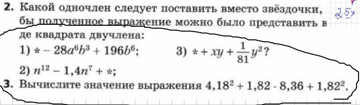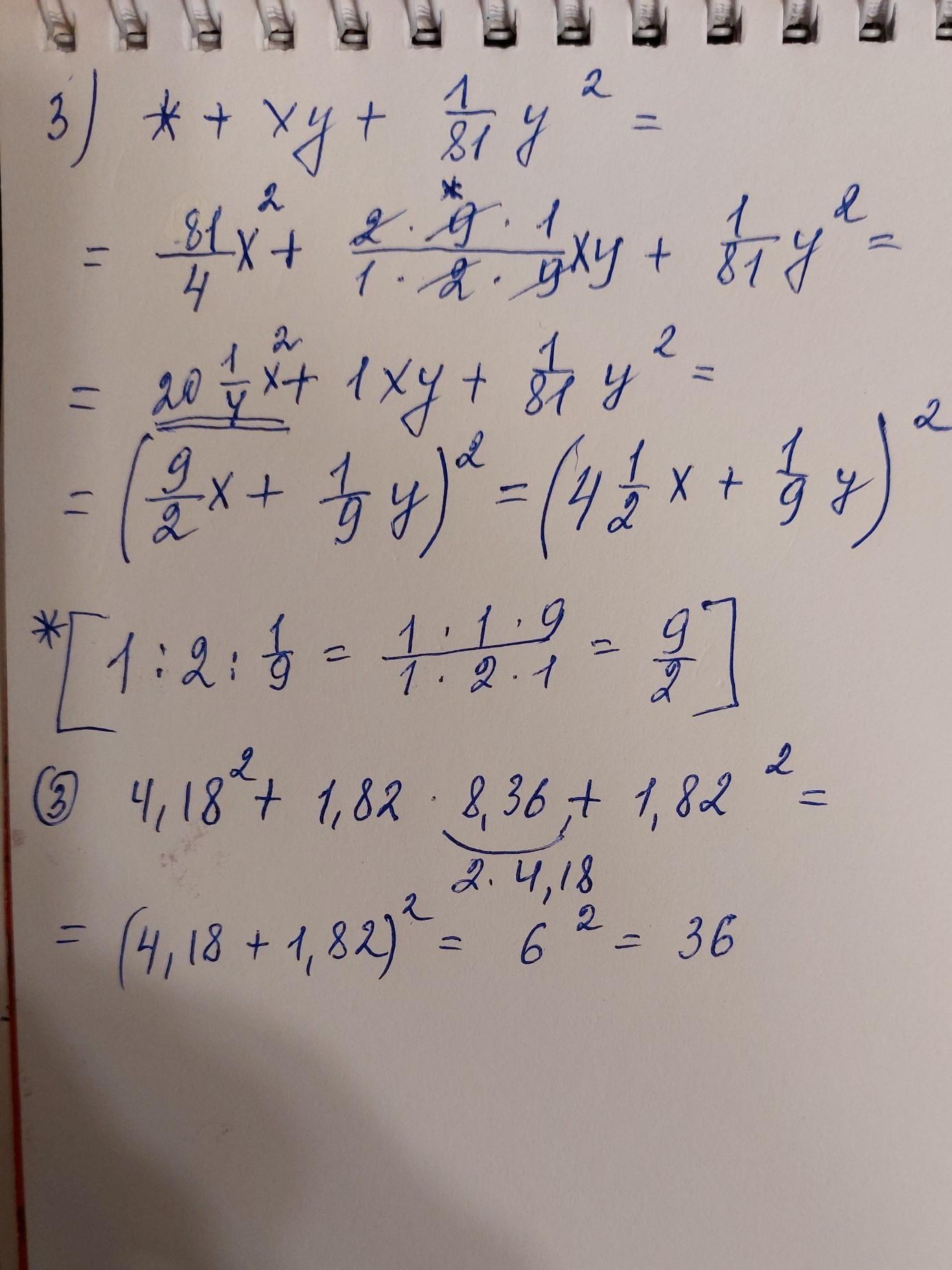 1) a^12; 2) 0.49n^2; 3) 81x^2; 3. =4.18^2 + 2*4.18*1.82 + 1.82^2=(4.18+1.82)^2=6^2=36
