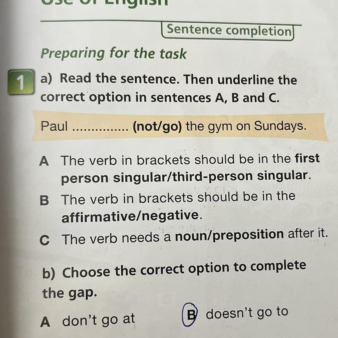Paul doesn't go to the gym on Sundays. Подлежащее- he (Paul). Говорится о постоянном действии. Если подлежащее- третье лицо единств.числа- в отрицании пиши doesn't.