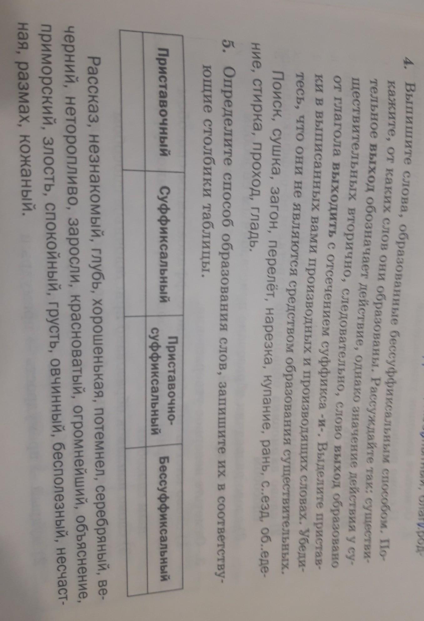 4. Выпишите слова, образованные бессуффиксальным способом.