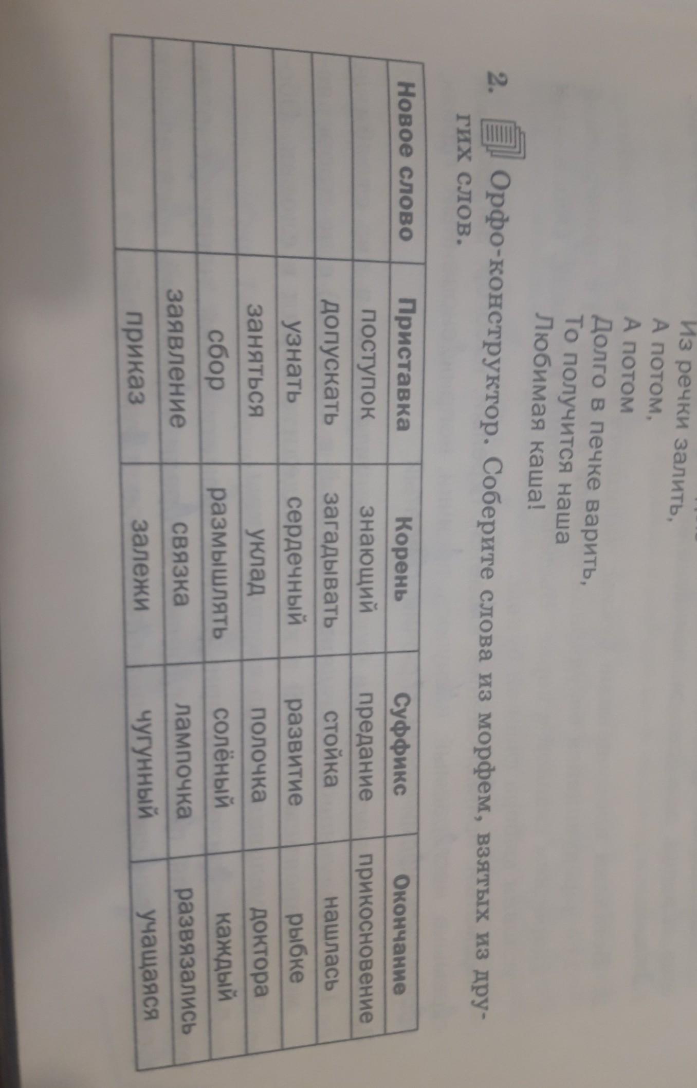Соберите слова из морфем, взятых из других слов.