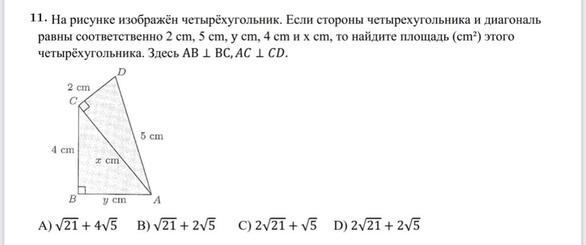S(ABCD)=S(∆CDA)+S(∆CAB)=√21+2√5 ед²