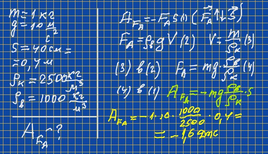 Визначити роботу сили Архімеда при переміщенні кульки на 40 см. Густина води 1000 кг/м3