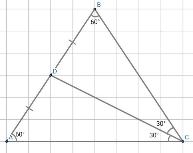 - СВ = 2AD или 2ВD , т.к медиана СD делит АВ пополам (АD=BD). По условию АС=2ВD , можно приравнить СВ=2ВD , тогда АС=СВ=2BD ⇒ AC=AB=BC ⇒ ΔABC-равносторонний , в равнст. треугольнике все углы равны , если сумма углов треугольнка составляет 180° , тогда ∠А=∠С=∠В=60° , СD ещё является биссектрисой , поэтому ∠АСD=60°/2=30°